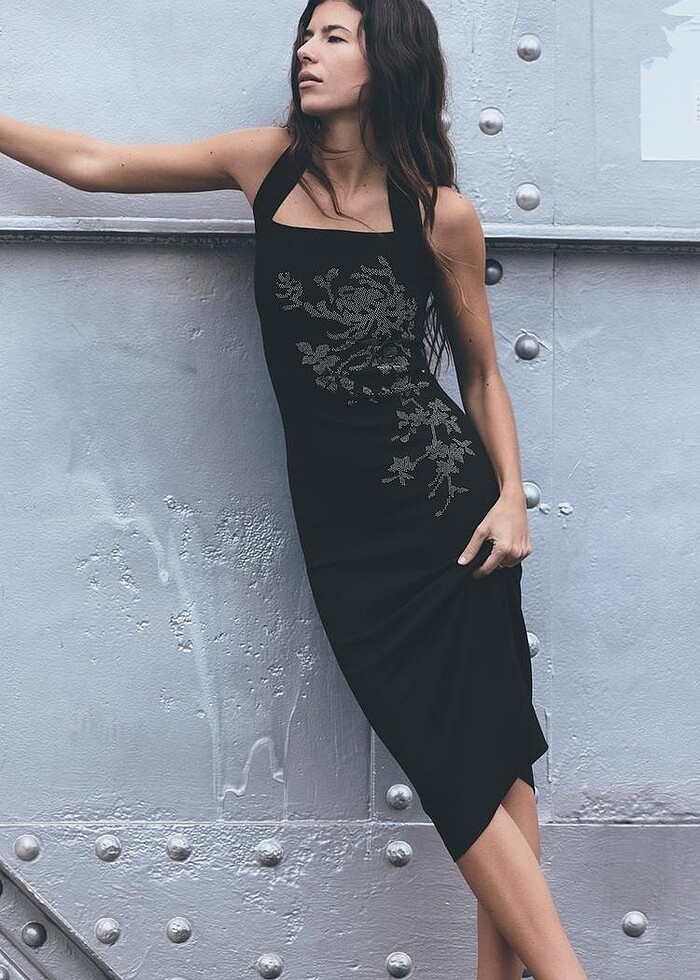 Zara taşlı siyah elbise