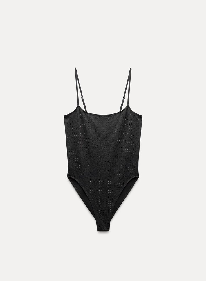 zara taşlı Siyah İnce Askılı body