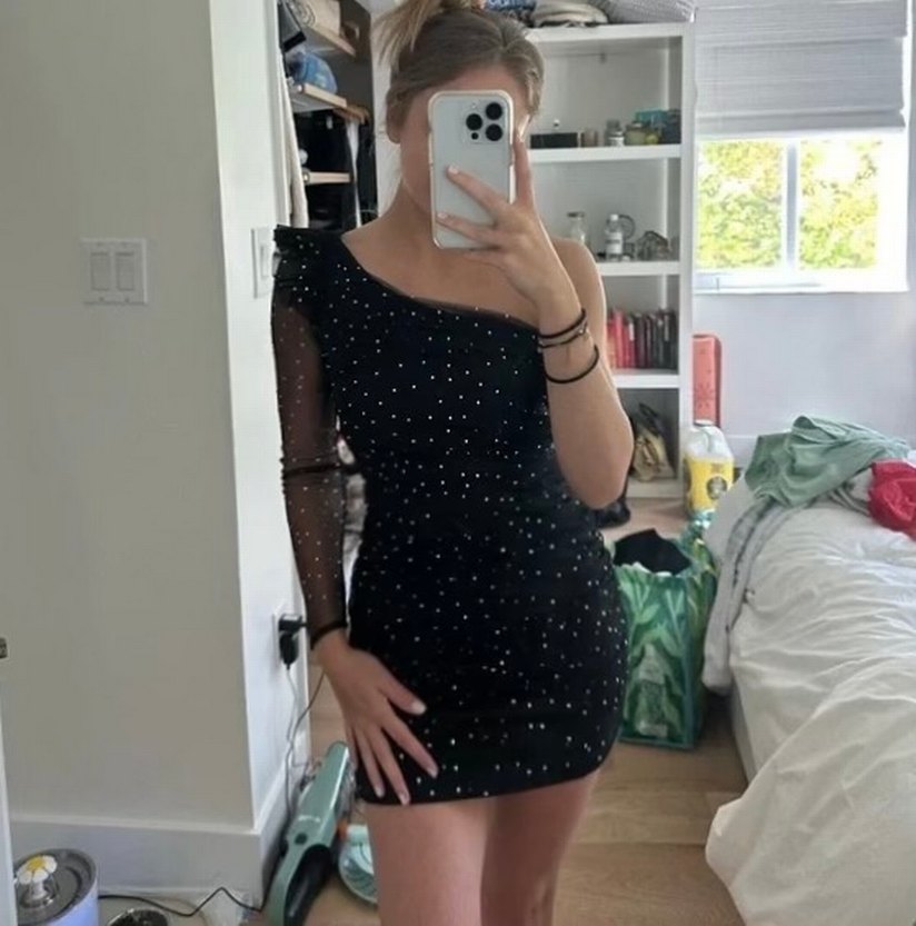 Zara Viral Taşlı Siyah Tek Omuz Elbise