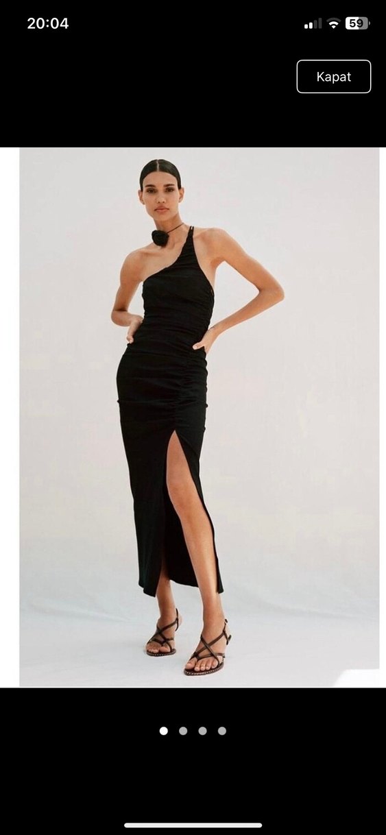 Zara Tek Omuzlu Drapeli Siyah Uzun Elbise