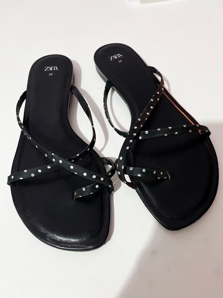 Siyah puantiyeli kadın terlik 38 beden 2 kere giydim biraz küçük gelmeye başladı