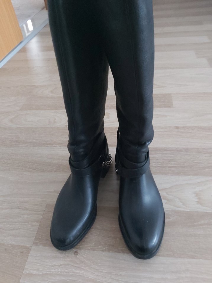 Tokalı detaylara sahip siyah deri diz boyu stiletto topuklu çizme, şık goth tarzıyla trend günlük kullanıma uygundur.#İnci#Tanca#LCW#Mango#. Yağmur Çizmesi olarak geçiyor. Saatlik giyilmiştir. İç kartonu dahi duruyor