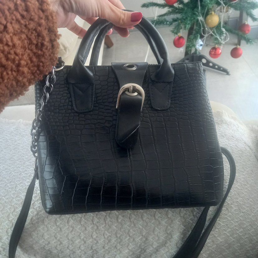 ZARA Tokalı Siyah Yılan Derisi Desenli Deri Kadın Çanta