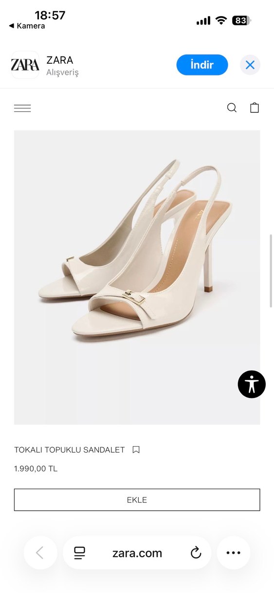 Zara , krem tokalı bantlı stiletto topuklu sandaletler, ofis kullanımı için minimalist ve çağdaş bir tarza sahiptir. 41 numara etiketli sıfır ürün