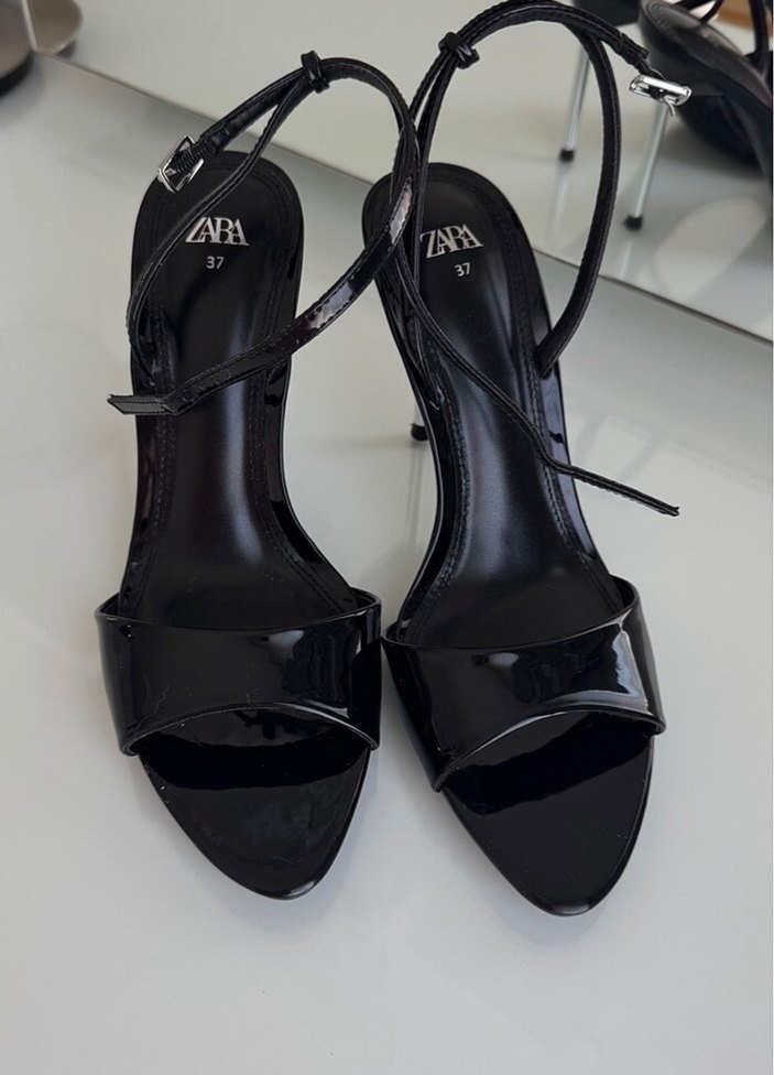 Zara yüksek topuklu rugan sandalet Sadece bir kez giyilmiştir. Durumu yenidir. Sadece bir topuk ucunda küçük bir hasar bulunmaktadır; kolayca değiştirilebilir. Bu durum dışında, taban dâhil olmak üzere sandaletler tamamen yeni gibidir. Sorularınız için özel mesajdan yazabilirsiniz.