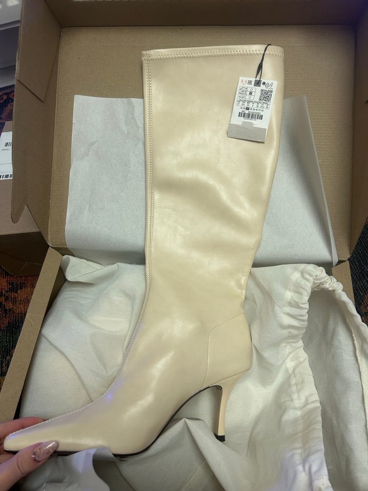 Zara ekru deri ince topuklu çizme yeni etiketli kutusunda