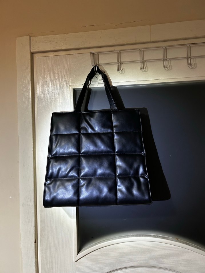 Sokak stili için kareli desene ve tokalı detaylara sahip siyah suni deri iş çantası, günlük kullanıma uygun. Eskitilmiş kolçası tertemizdir yırtığı vs yoktur