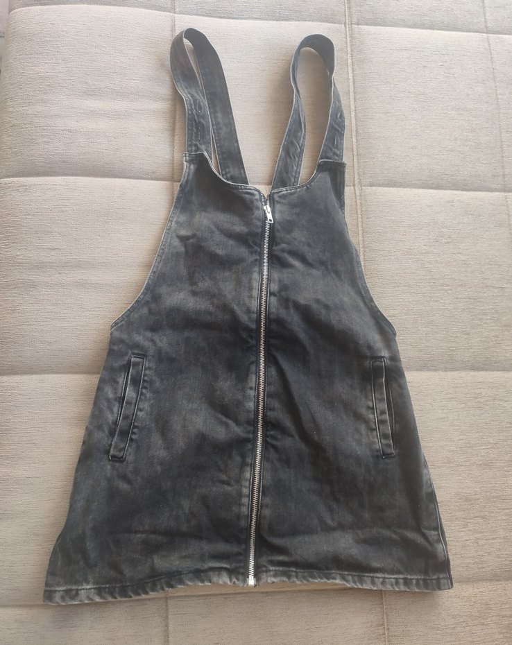 Zara Trafaluc denim askılı etek kısa tulum S beden yırtık delik yoktur rengi eskitme siyah füme arası renk