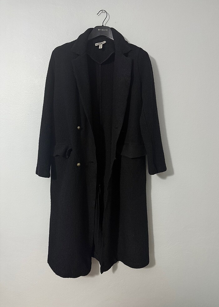 Kumaşı dokuludur. Temiz kullanılmıştır, herhangi bir yırtığı, lekesi yoktur. Önünde ve kol manşetlerinde şık düğme detayları bulunur. Diz altı boydadır, hem spor hem şık kombinlenebilir. Uzunluk: 110 cm İki kol arası: 52 cm #zara #zarakaban #siyahkaban #kaban #mont #mbeden #uzunkaban #oldmoney #golddüğme #trafaluc #kışlık #kaşe #trend