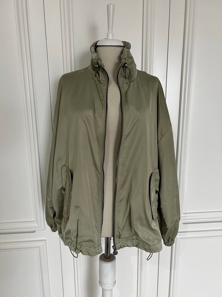 Haki renk fermuarlı trençkot birkaç defa kullanıldı