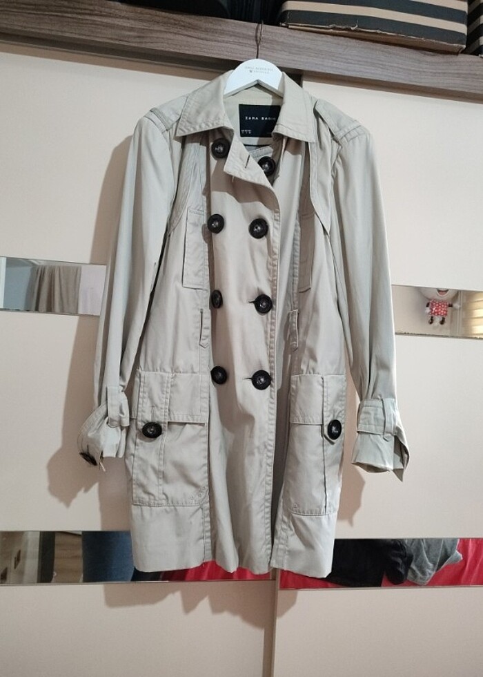 Zara S beden Trençkot, kemeri yoktur. Bedeni S fakat kalıbı geniş M ve L giyenlere rahatlıkla olur