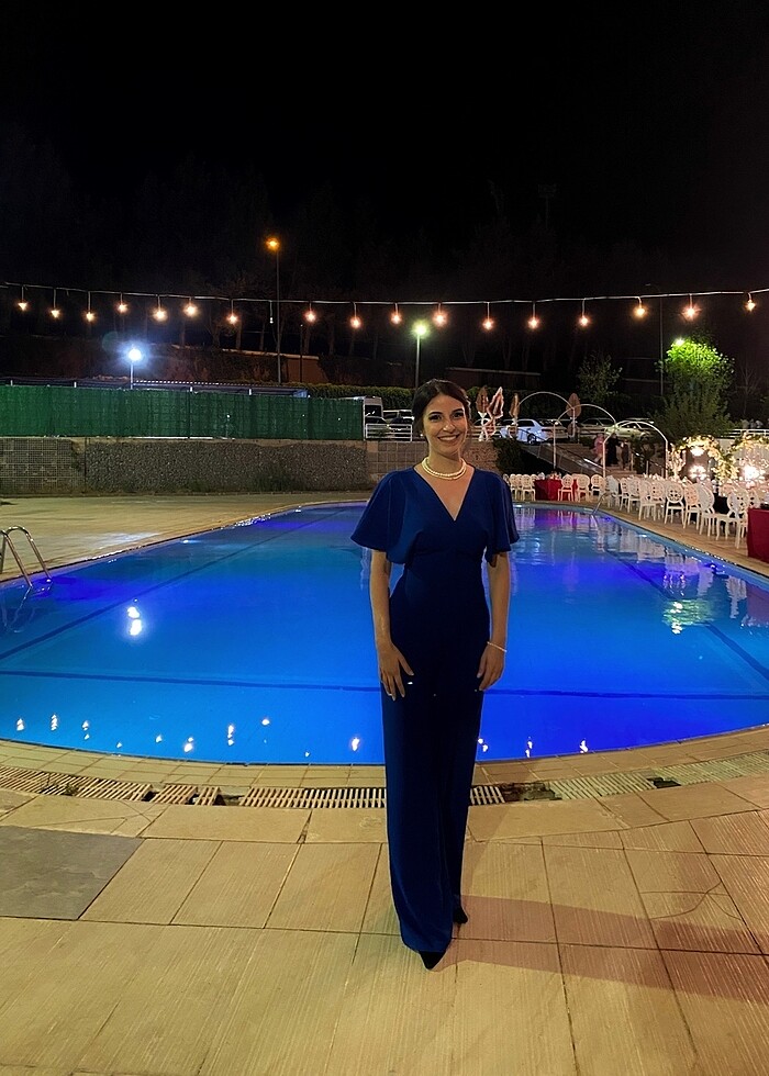 Zara tulum. Önündeki V derin dekolteydi ben biraz kapattırdım isteyen açabilir basit bir işlemdi. Sadece düğünde 1 kere giydim. Kusursuz dolapta bekliyor. 167 boy 52 kg yum burda.