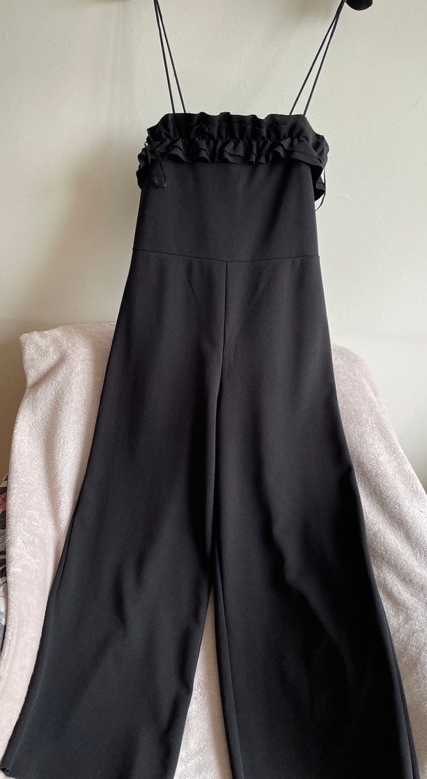 Zara Siyah uzun tulum, bir etkinlikte giyildi beden nedeniyle satışa konuldu dar geldiği için fermuar kısmında hafif sökük mevcuttur satışa koymadan görünsün diye dikilmedi rahatlıkla ufak bir tamir ile yapılabilir askılı yaka ve üstte fırfır detayına sahiptir. Paça lazer kesimli Düzenli kesim ve kolsuz tasarıma sahip, yumuşak sentetik kumaştan üretilmiştir. Günlük kullanım için idealdir. ✨iki koltuk altı arası 41 cm boy koltuk altından ölçtüm 110 cm
