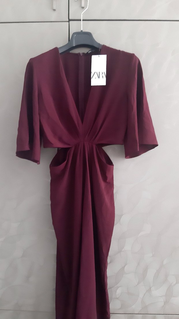 zara tulum yanlarda dekolteli uzun bordo sifir hic giyilmedi