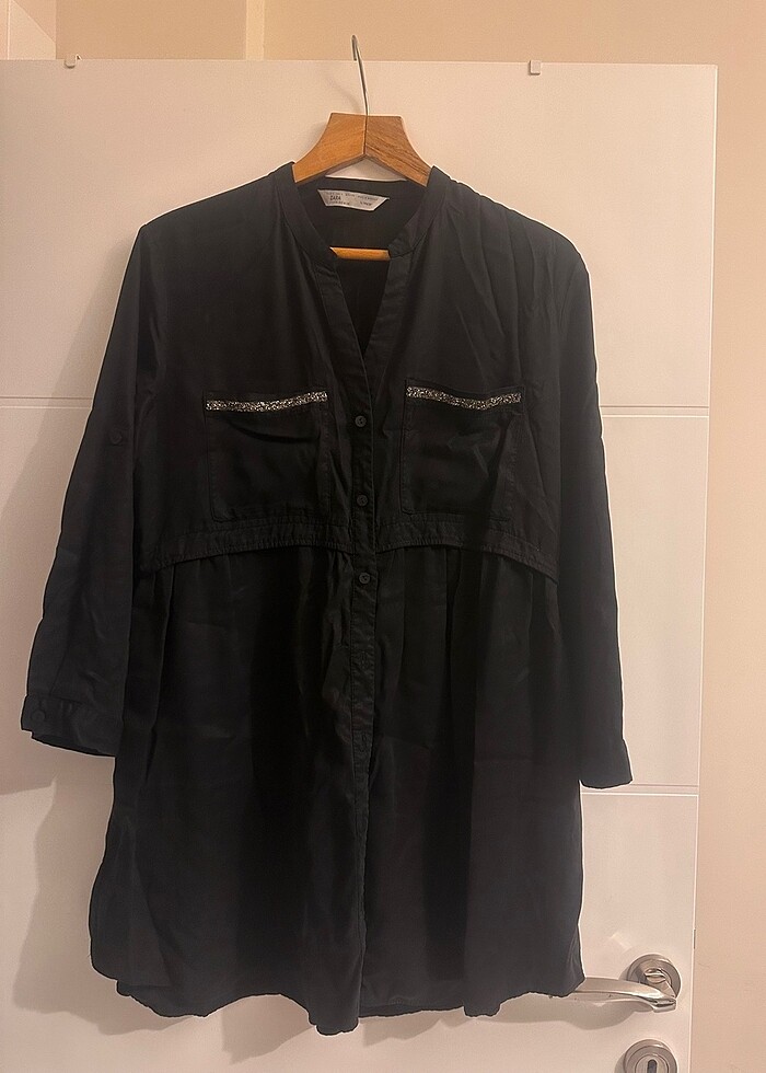 Zara uzun gömlek.Az ve temiz kullanıldı.Taşlanmış ipek.Tencel kumaş.Yaz için ideal.Boy:77 cm.Tunik olarak tercih edilebilir.Yırtık,sökük,leke yoktur.