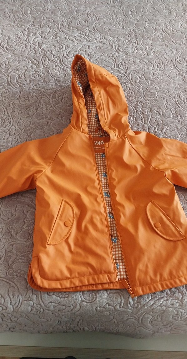 Fermuarlı, turuncu parlak dış yüzeyli, notched lapel yakalı ve içi yumuşak fleece astarlı kız çocuk yağmurluğudur. Sokak stili için uygundur. ☔