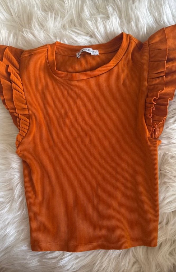 Zara Turuncu Fırfırlı Kısa Kollu Tişört