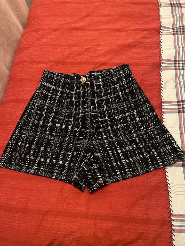 Düğmeli, siyah ekoseli yüksek bel kadın şort, bol kesim ve kısa boyda, sentetik kumaştan yapılmıştır. Günlük kullanım için uygundur. 1 kez giyildi