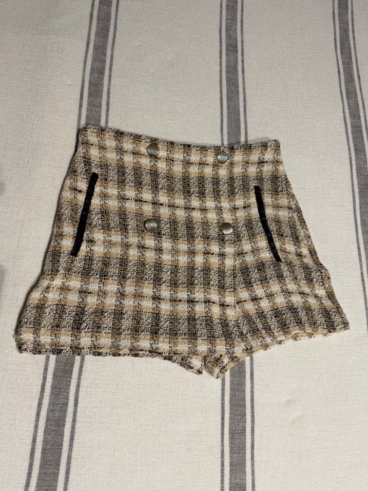 Zara Small Beden Tüvit kumaş şort etek Yalancı cep detaylı Hiçbir deformasyon yoktur. Ölçüler fotoğrafta yer almaktadır 36 beden uyumludur. Büyük geldiği için satıyorum. İsteyen olursa takım ceketi de mevcuttur.