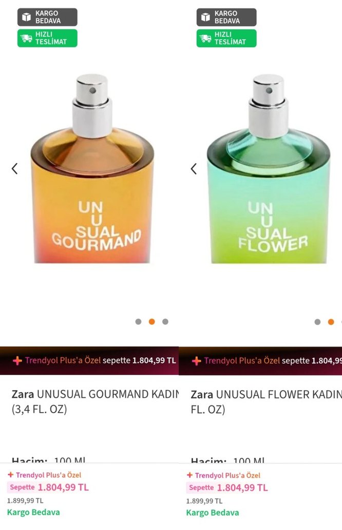 İKİ ADET ÜRÜN. Zara Unusual Gourmand Flower kadın parfümü, 100 ml şişede benzersiz bir koku sunar.