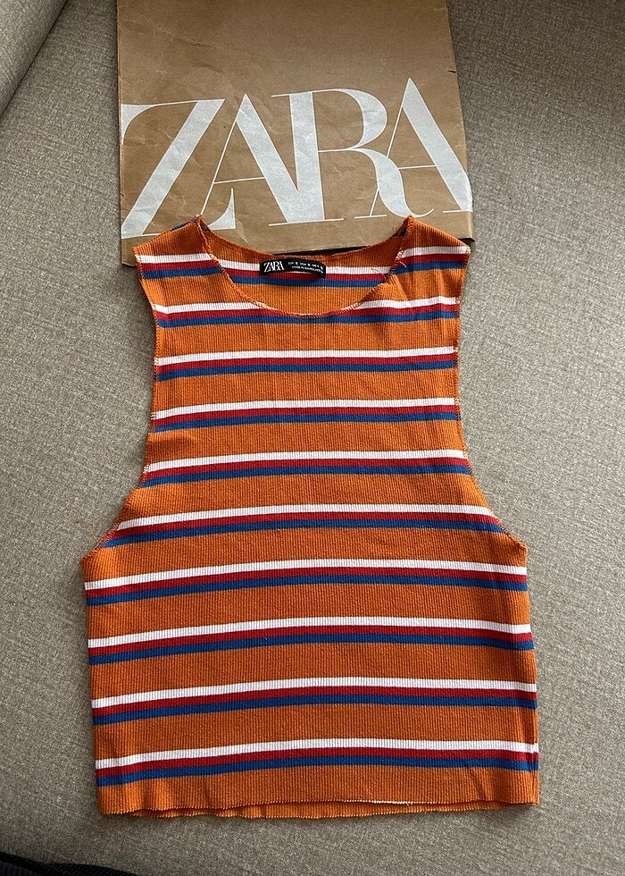 Zara çok renkli halter yaka üst