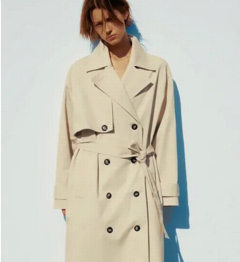 Zara Bej renkli max uzunlukta kadın trençkot, uzun kollu ve kesik yakalıdır. Tek sorun etiketi s beden basılmış fakat xl 44 beden uyumludur.Düz, rahat kesim ve çift düğmeli ön tasarıma sahiptir. Belden bağlamalı, günlük kullanım için şık ve rahat bir modeldir. #zara #trençkot