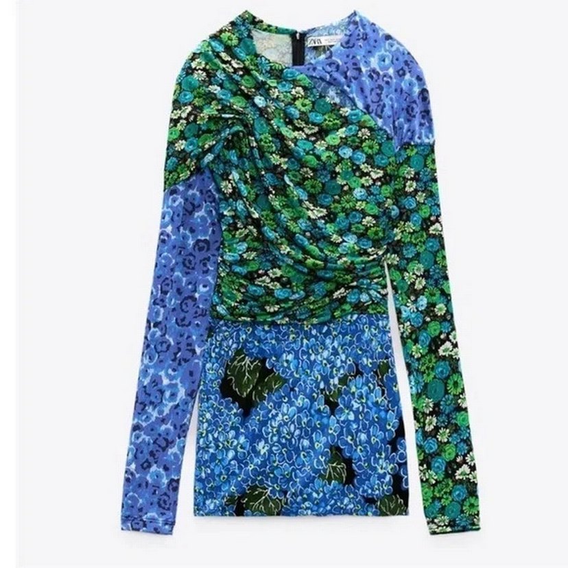 Zara Uzun Kollu Mini Elbise, Çok Renkli, Drapeli