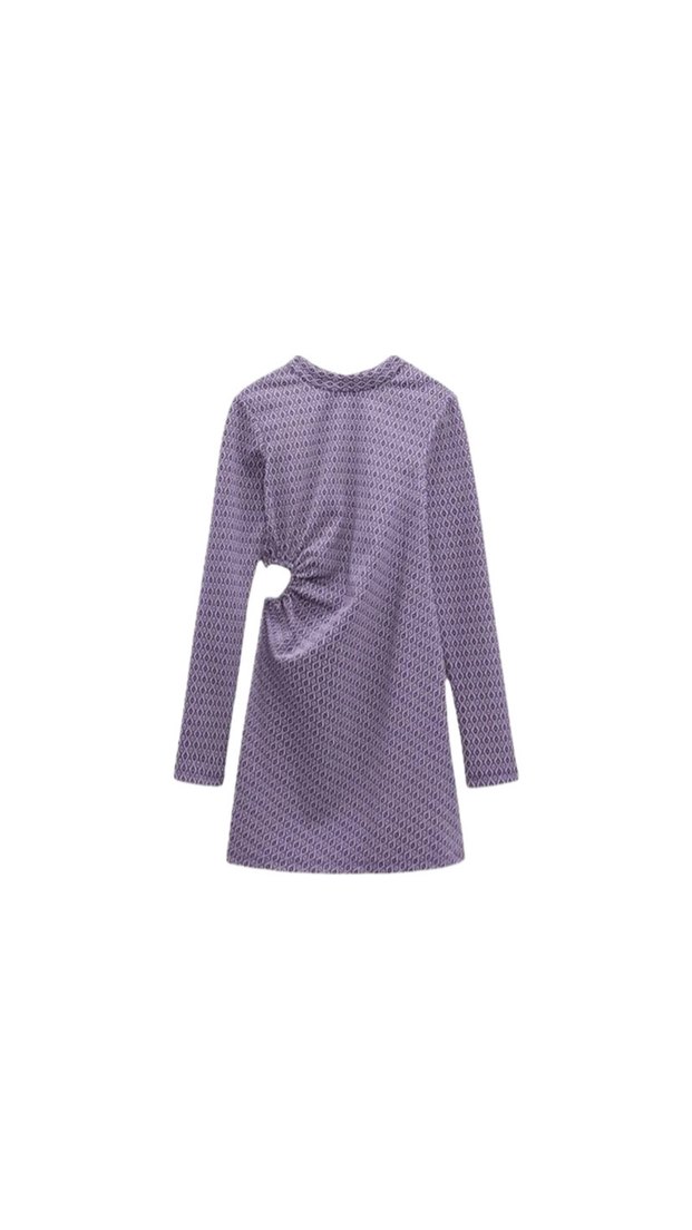 Zara Uzun Kollu Mor Mini Örgü Elbise