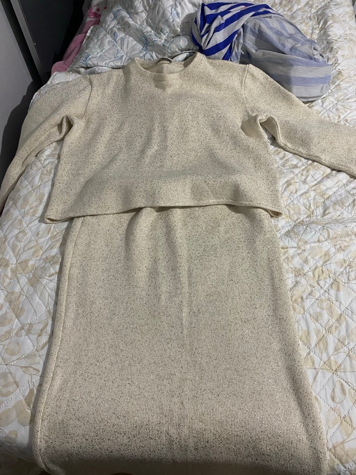 Uzun kollu, örme yapıda, krem rengi gold detayları olan ikili takım bedeni m xl beden olmama ragmen oldu sadece bır kere gıydım bedenı standarttır ılgılenene yardımcı olurum