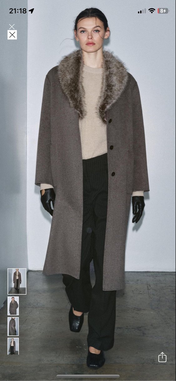 Zara uzun yünlü Kahverengi Kürklü Yaka Uzun Kaban