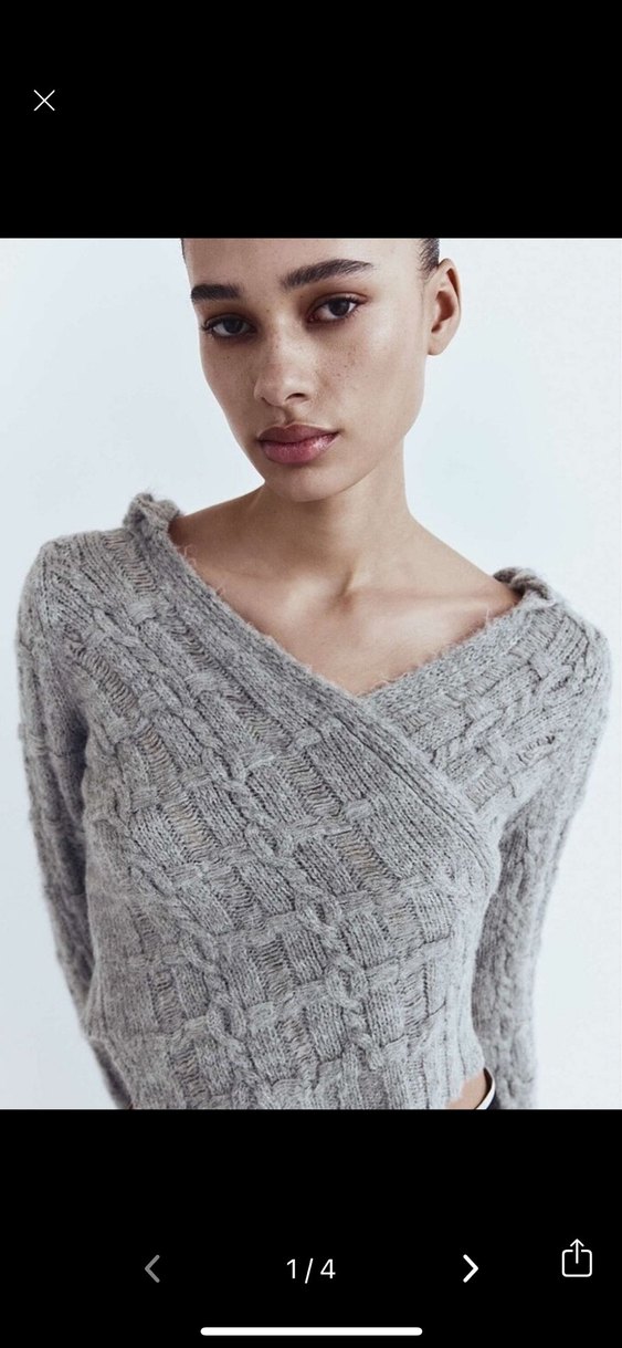 Zara V Yaka Gri Örgü Kadın Kazak