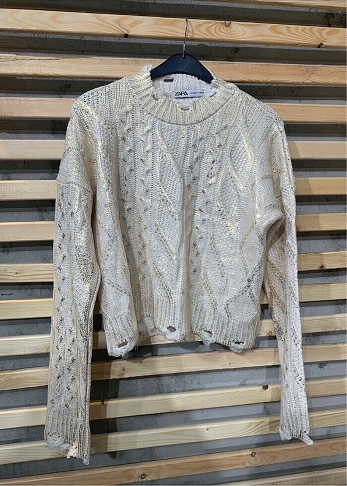 Yeni sezon metalık baskılı saç örgülü triko ,standart beden 34-40 arası uyumlu alırsanız ilan açtırmayı unutmayın lütfen. #zara #varaklıkazak #triko #crop #gold