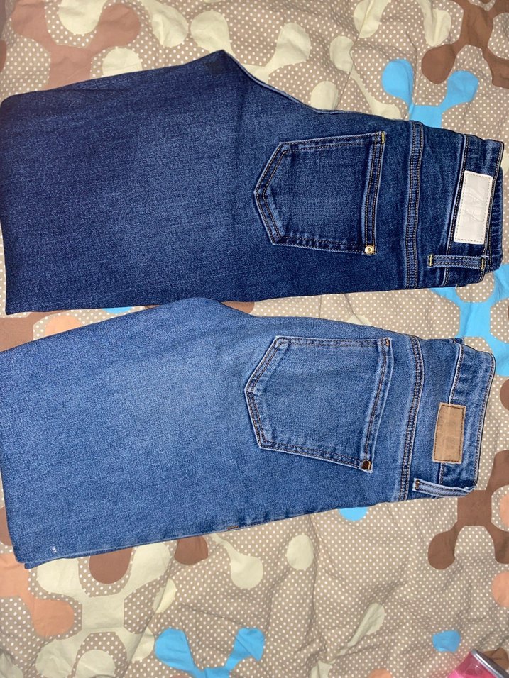 İkisini bir satıyorm ayrı ayrı almak isteyen de yazabilir tekliflere açığım Koyu mavi renkte, midi boy, fitted kesim kadın kot pantolon. Tokalı detaylı, desen içermeyen, gündelik kullanım için uygundur.
