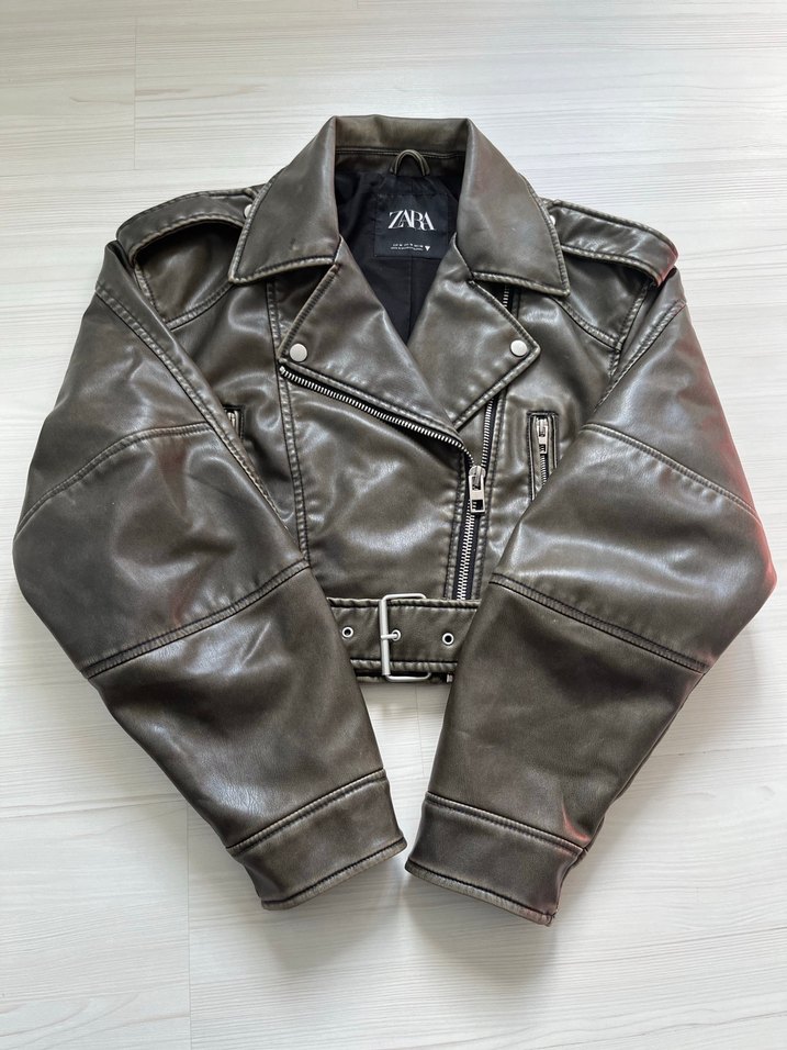 ⭐️Viral haki eskitme detaylı deri ceket son resme bakın yakasında siyah nokta kusuru var leke olduğu için fiyatı uygun tutuyorum ve kollarında siyahlıklar var⭐️
