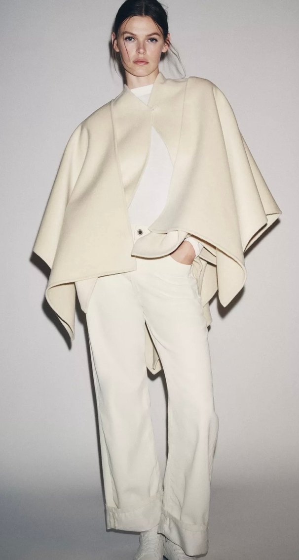 Zara viral olan kaban. Stok bulmak imkansız. Büyük geldiği için satıyorum. Hiç kullanılmadı. Beyaz midi uzunlukta kadın kaban, drapeli tasarımı ve kesikli yakası ile uzun kolludur. Rahat kesimi ve yumuşak, sıcak kumaşıyla günlük kullanıma uygundur. Minimalist normcore stilini yansıtır.