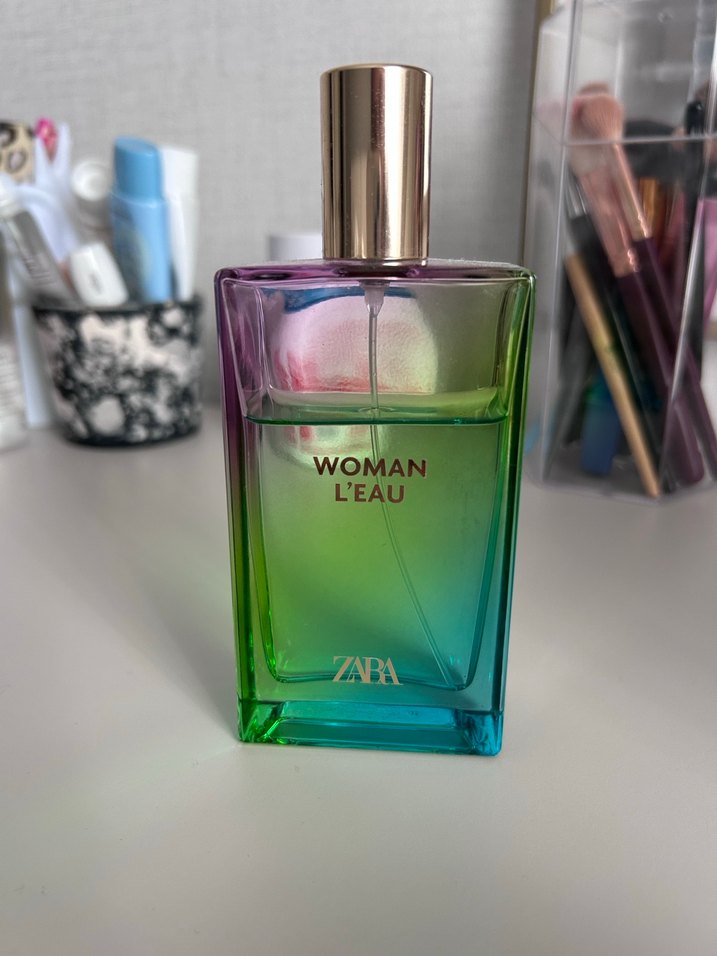Zara Woman L'Eau, renkli degrade şişesi ve altın kapaklı kadın parfümüdür. Meyveli taze bir kokusu vardır