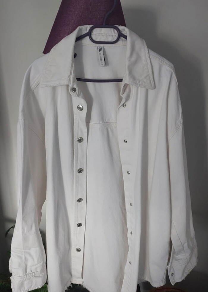 #zara orjinal beyaz yaka,kol ve etek ucları yirtik detayli temiz kusursuz jean gomlek xs unisex erkek daha cok