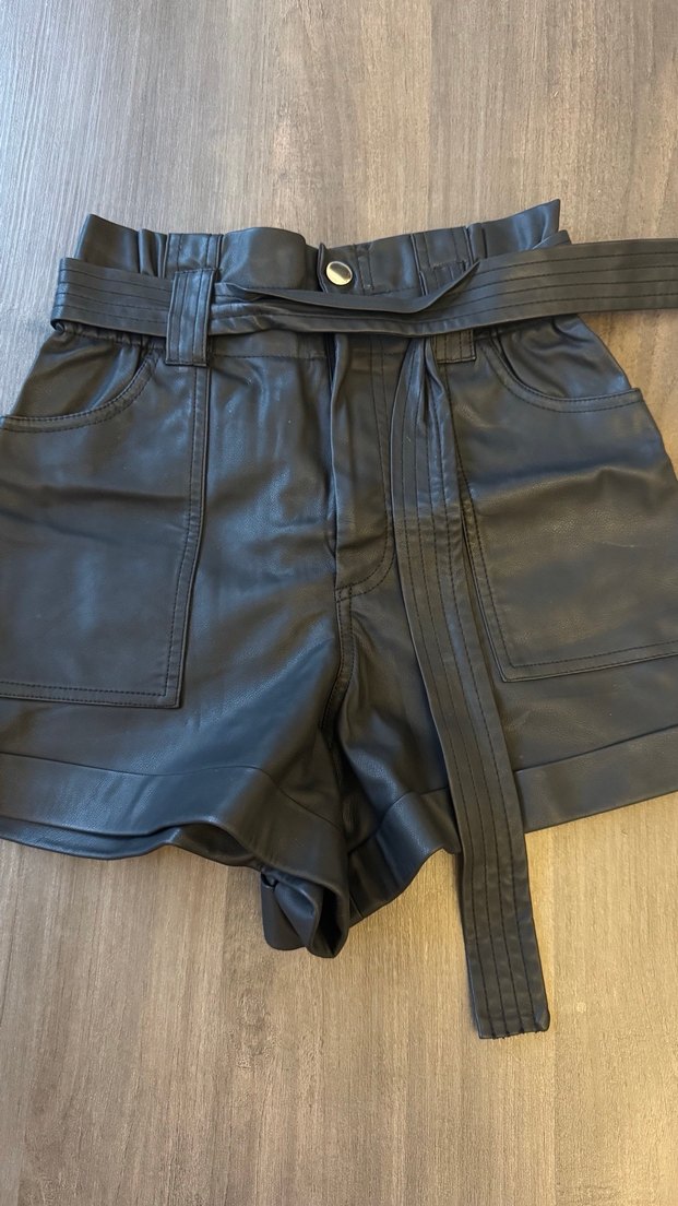 Xs beden Kemerli, siyah, mini şort. Sokak modasına uygun, günlük kullanım için ideal, desensiz tasarım. Herhangi bir defosu yoktur.