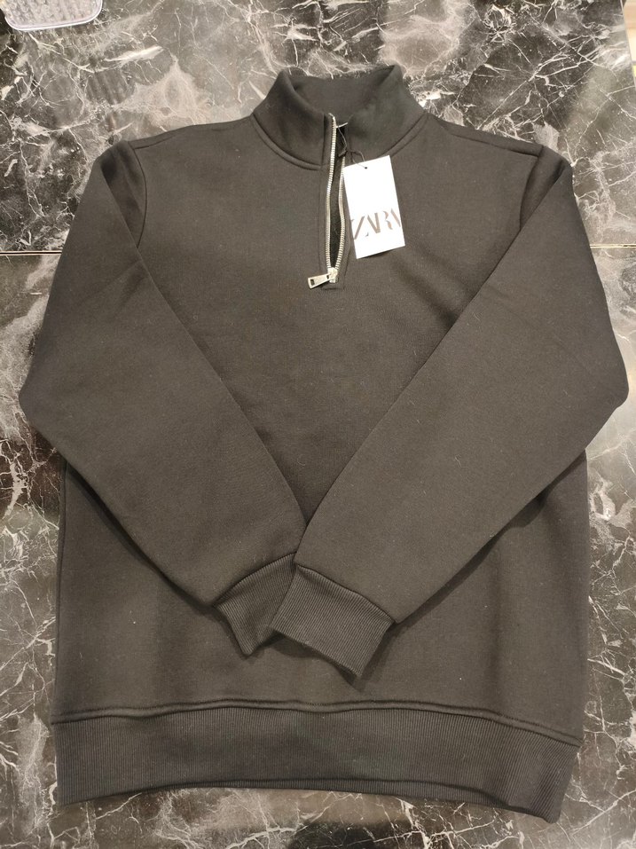 ZARA marka yarım fermuarlı sweatshirt. • Sıfırdır, etiketlidir • Beden: L • %100 pamuk • Düz siyah renk, basic ve şık tasarım • Günlük kullanım ve kombin için ideal • Fermuar ve kumaş kalitesi çok iyi Mağaza fiyatı etikette mevcuttur. Sorularınız için mesaj atabilirsiniz