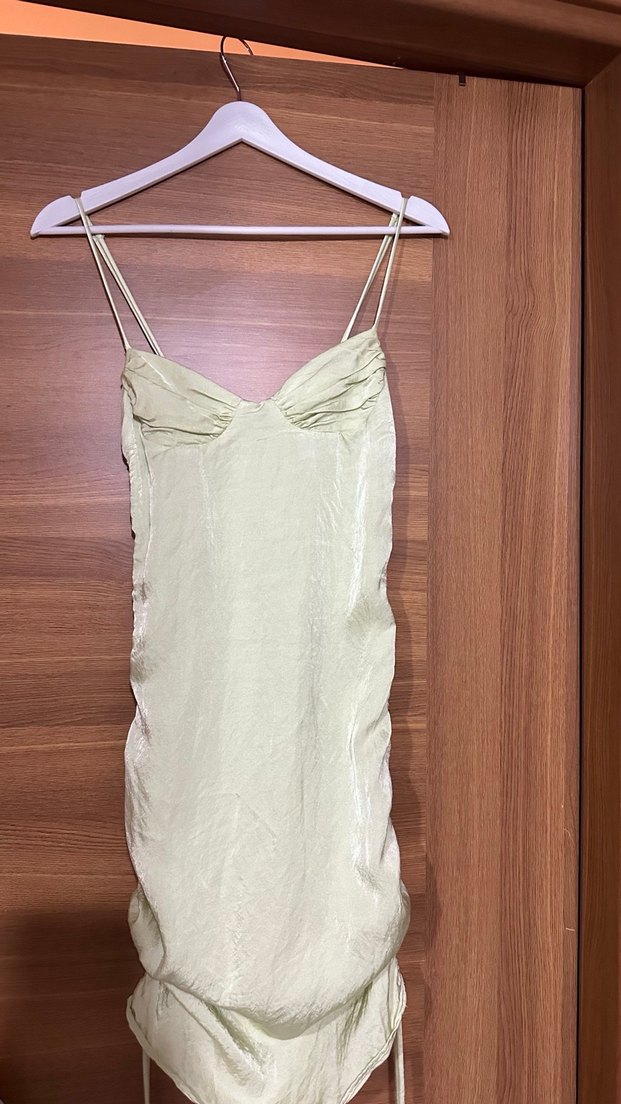 Zara Yeşil Drapeli Saten Elbise