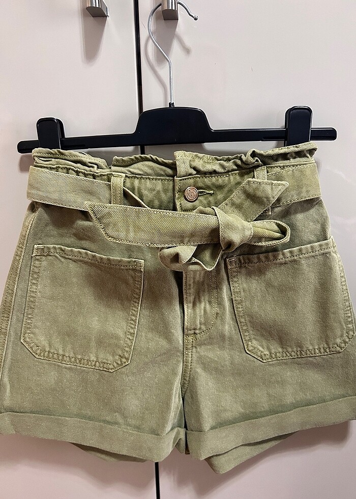 Zara yeşil kot şort Paperbag, yüksek bel, beli lastikli Beli 32 cm, boyu 36 cm
