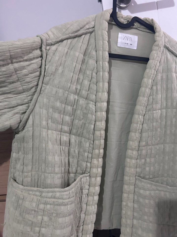 Gri keten ceket, pliseli dokusu ve notlu yakasıyla dikkat çeker. Bol kesim, askılı kollar ve midi boyuyla bohem ve rahat bir tarz sunar. Günlük kullanım için uygundur.