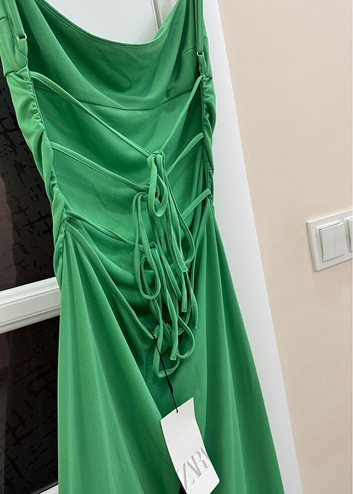 Zara yeşil renkli drapeli sırt dekolteli elbise#yeni#etiketli#zara#yeşil#renkli#drapeli#dekolteli#elbise
