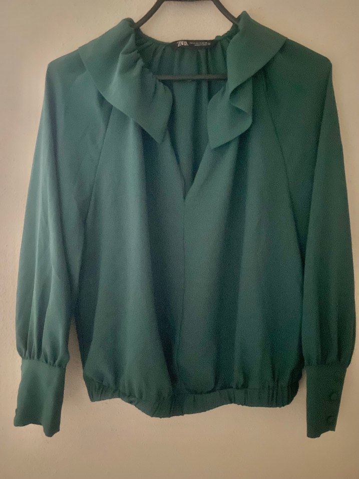 ZARA Yeşil V Yakalı Uzun Kollu Bluz