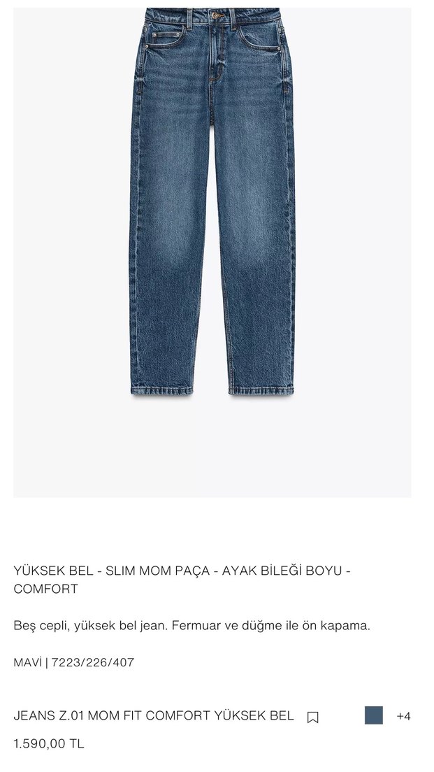 Zara Yüksek Bel Slim Mom Paça Jean 38 Beden