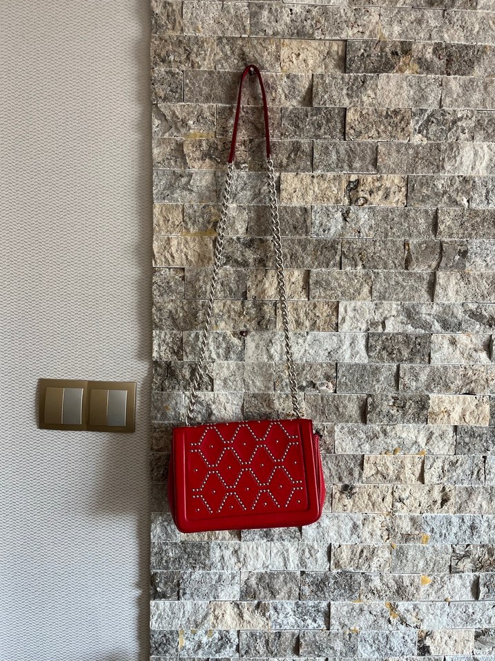 Kırmızı Keçi derisi şık bir çanta.Dışında hiçbir problemi yoktur sade kapak iç kısmında deri dökülmesi var.değerlendirmek isteyene fiyatı uyguna koyuyorum iade yoktur.