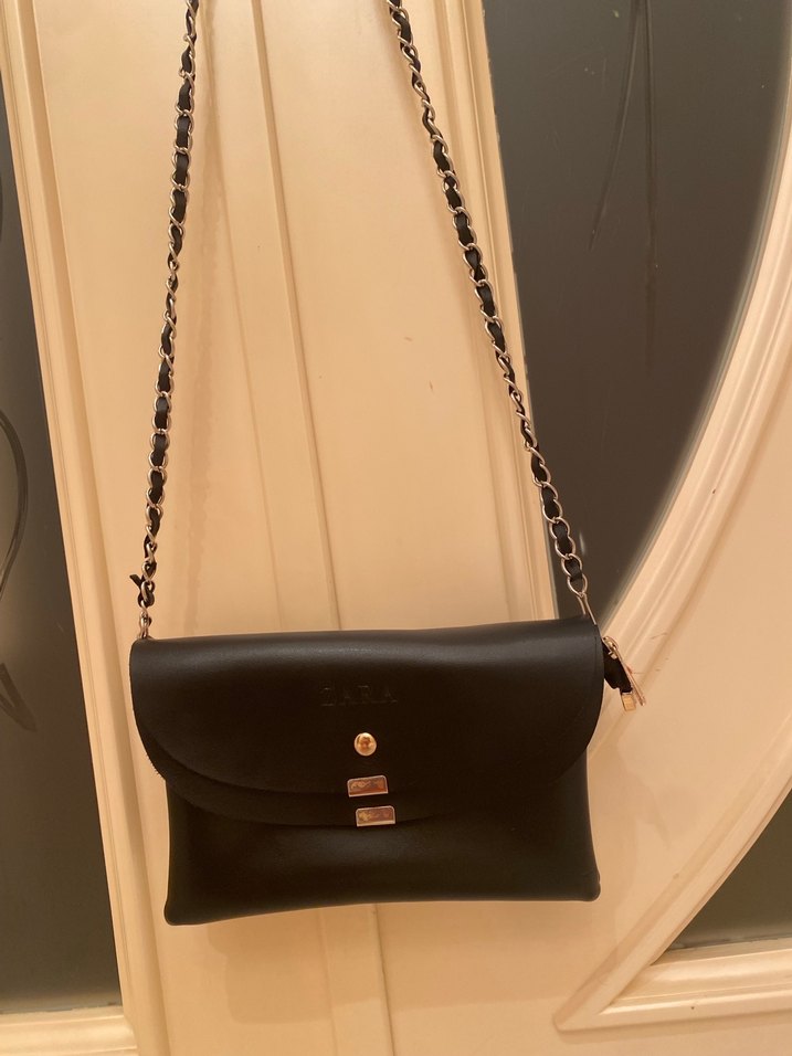 Zara Zincir Detaylı Siyah Deri Kadın Çanta