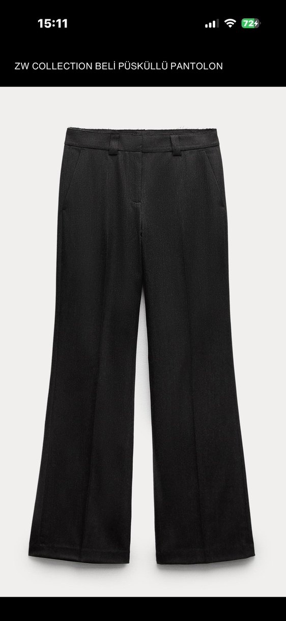 Siyah kumaş pantolon, rahat kesim ve midi boyda, ipeksi dokulu kumaştan üretilmiştir. Ofis için uygun, zahmetsiz şıklık sunar.