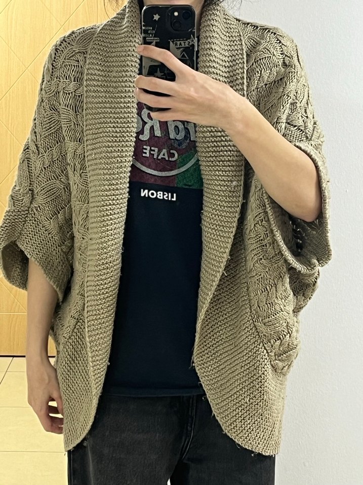 İthal ürün, Kahverengi, desenli örgü kumaştan, kısa kollu ve bol kesim kadın hırka, günlük sokak tarzı için uygundur.
