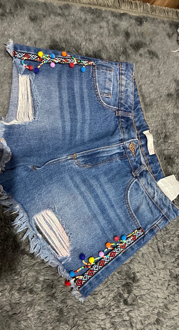 ZaraRenkli Nakışlı ve Boncuklu Mini Kot Şort